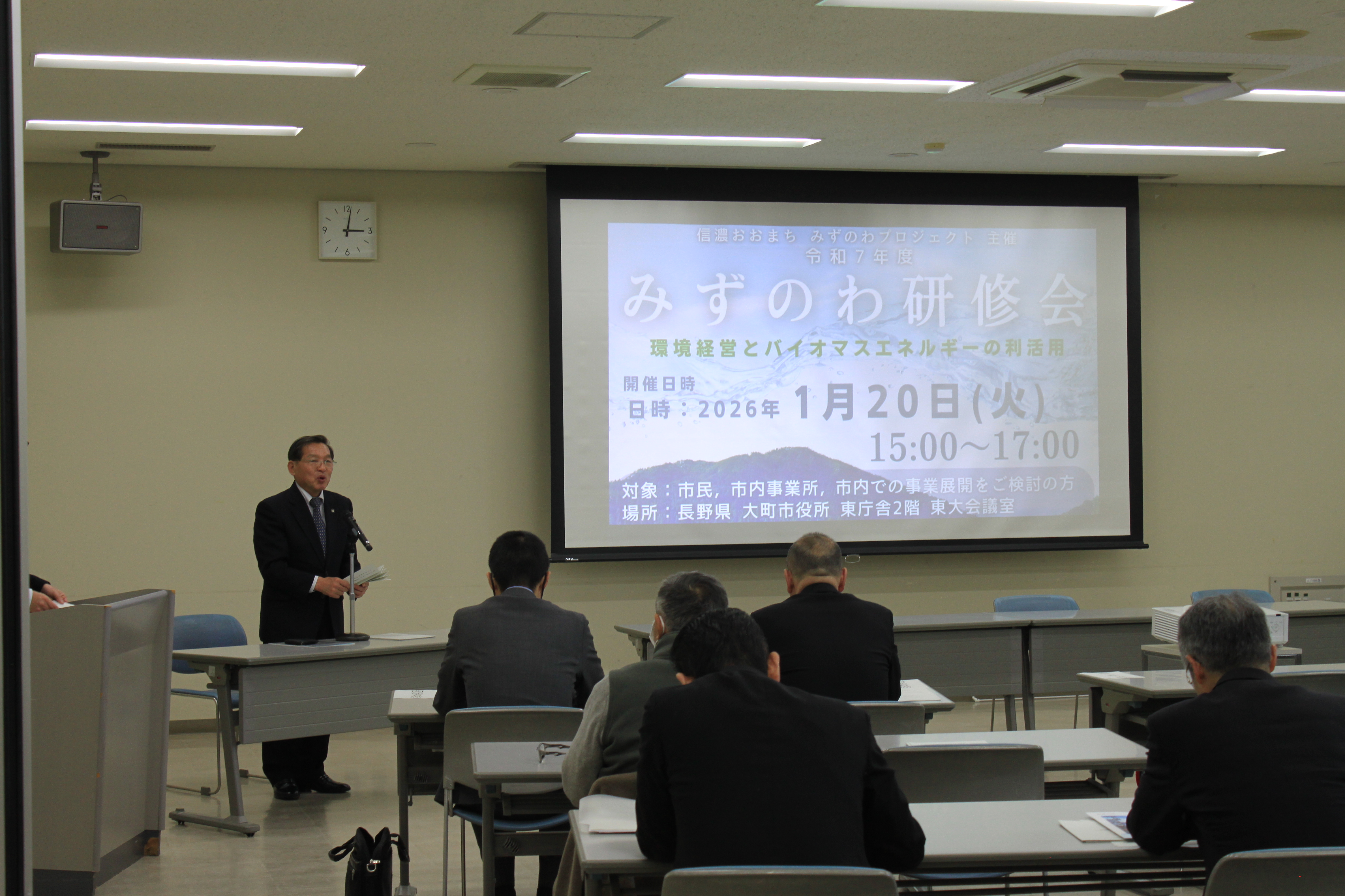 20日、信濃大町みずのわプロジェクト主催の「みずのわ研修会」が大町市役所で開かれました。