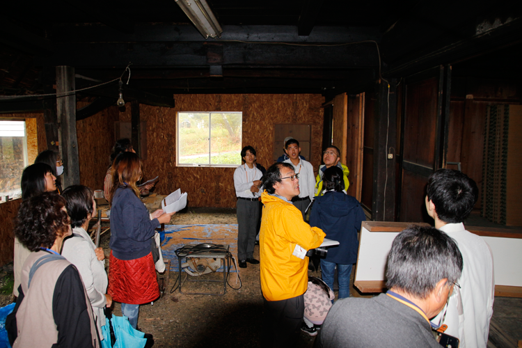 当日は市内外から12人が参加し、古木を扱う業者、山翠舎の古木倉庫や、美麻地区の古民家を見学しました。