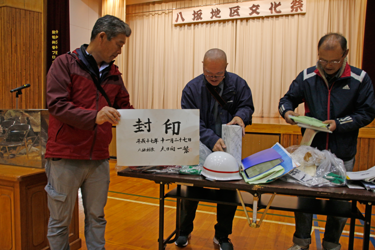 10月25日、八坂小中学校そよかぜ校舎(小学校)で、八坂地区文化祭が開催され、旧八坂村のタイムカプセルが開封されました。