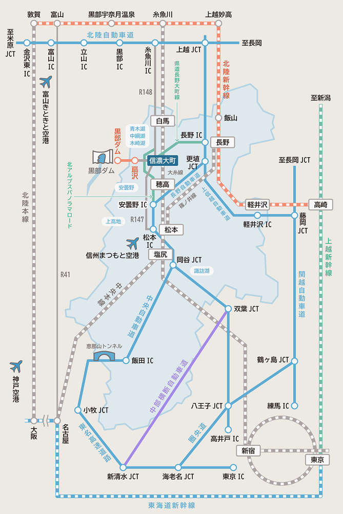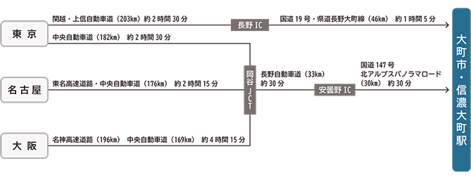 長野県大町市へのアクセス