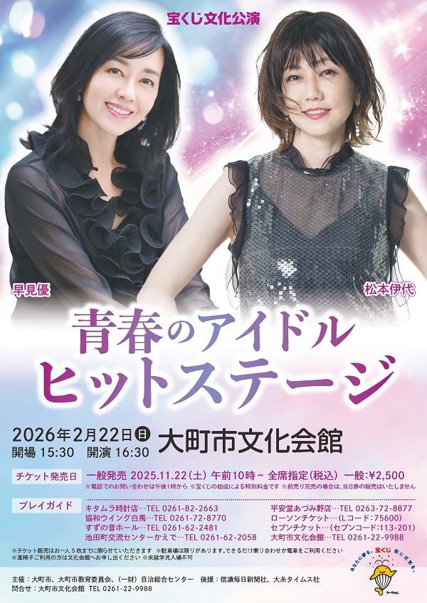 宝くじ文化公演 松本伊代さん、早見優さん出演「青春のアイドルヒットステージ」