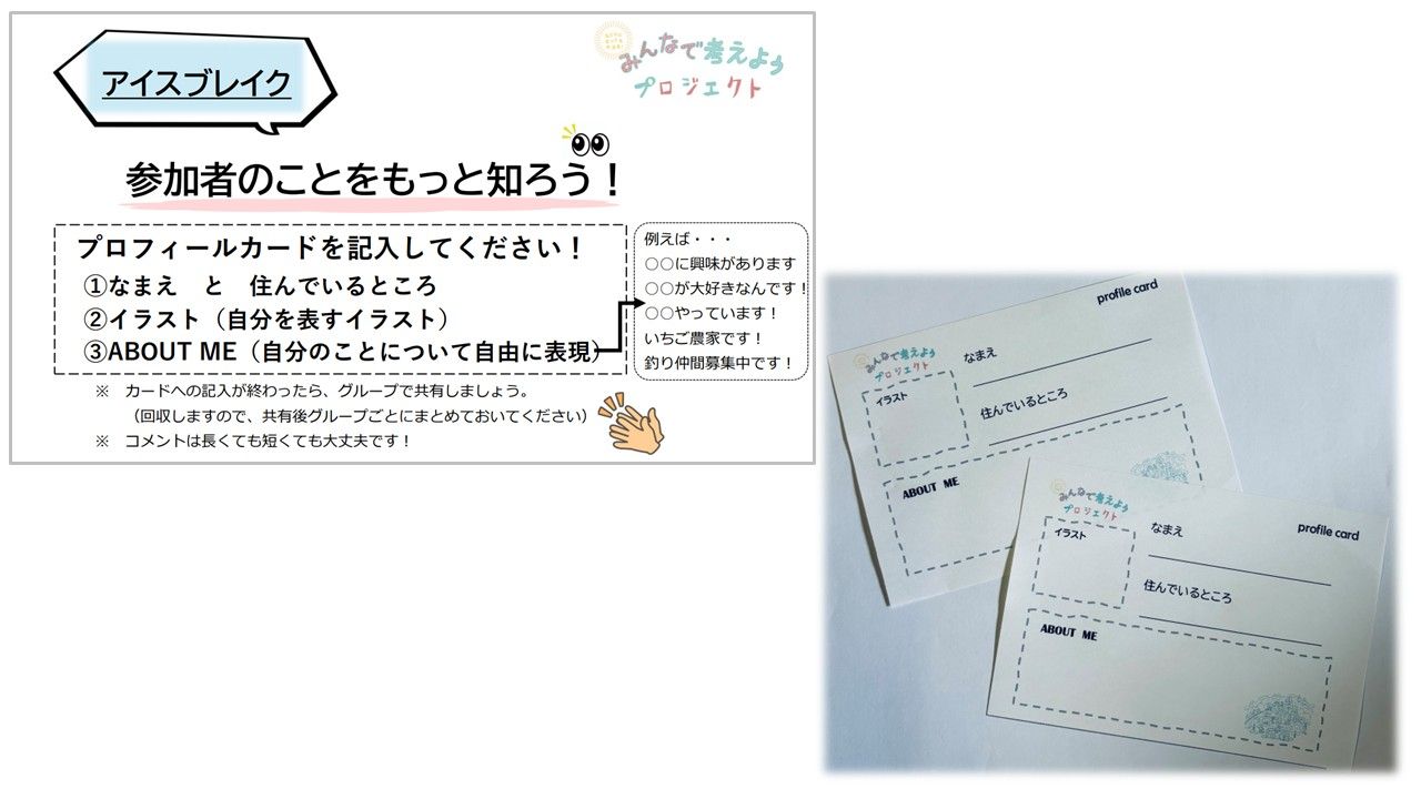 プロフィールカードに、それを自由に記入していただき、グループで共有しました。