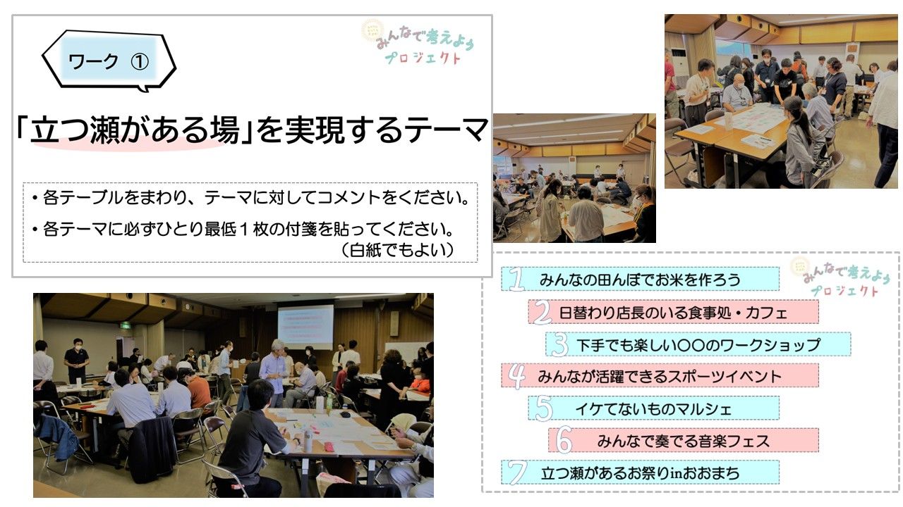 前回出していただいた、「つながりの種」からつくる「立つ瀬がある場・関係」を7つのテーマとしてピックアップ。