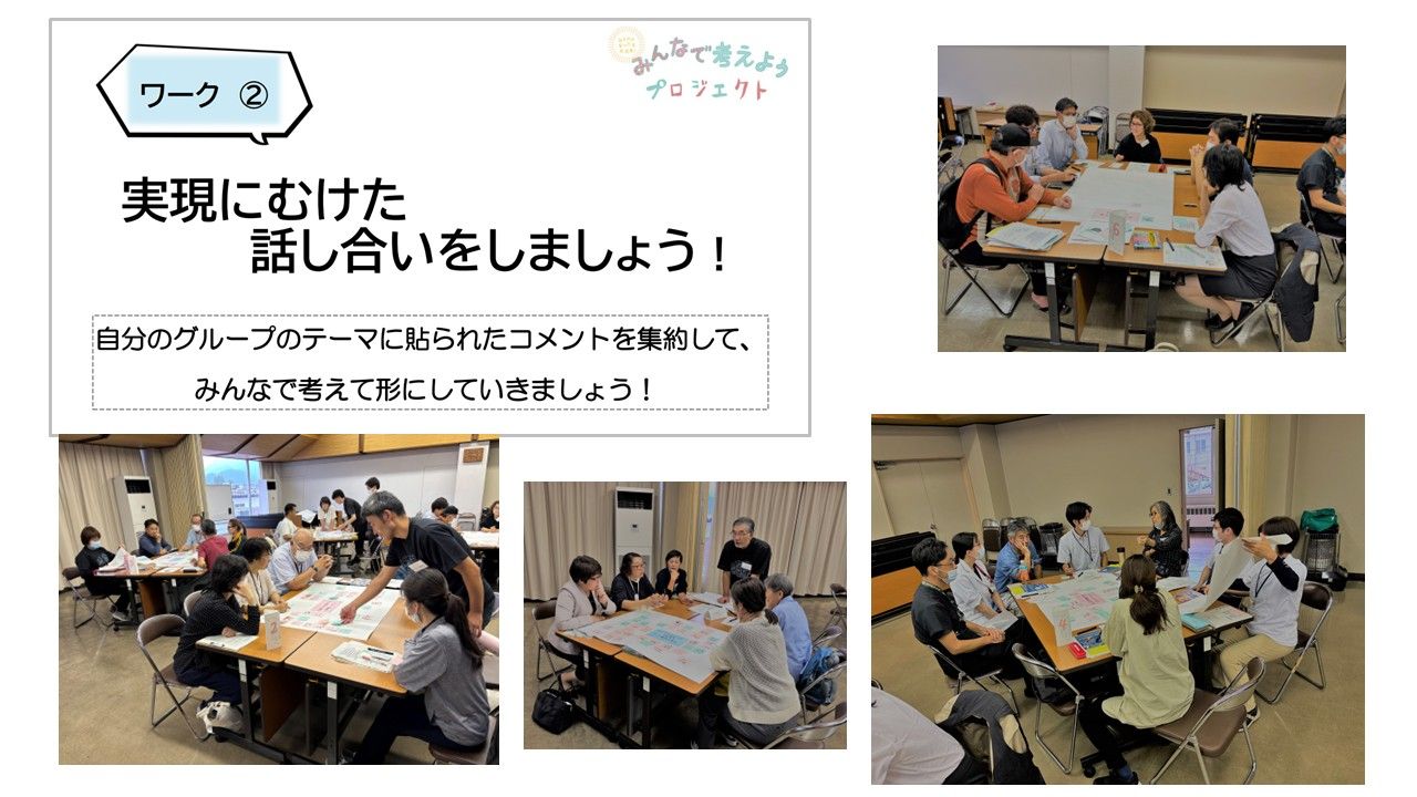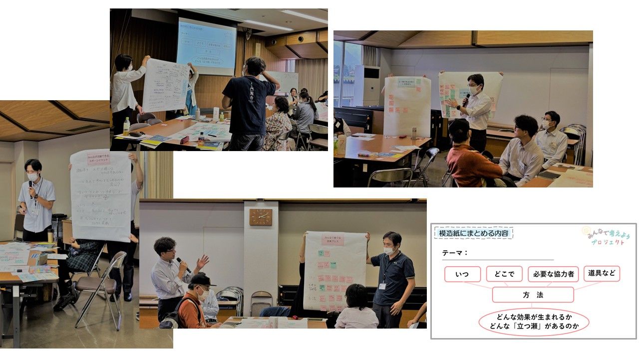 令和7年10月1日(水)に、大町市役所 西庁舎 西会議室にて開催した「みんなで考えようプロジェクト」では、43名の参加者と、前回(7/29実施)のふり返りやグループワークを行いました。今回の目的は、