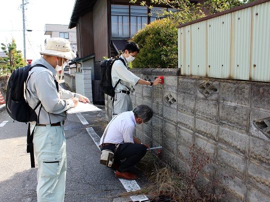 安全点検は市内の人口集中地区内の道路沿いにある塀について、塀の高さ、基礎の有無、傾きやひび割れなどを確認する外観点検と、鉄筋探査機による鉄筋の有無、鉄筋の間隔などを確認する内部点検を行い、危険性の高い塀を把握することで、今後発生が予想される地震や災害に備え、安全な地域づくりへの取り組みとして行います。