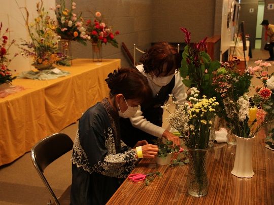 生花アレンジメントの体験ブースを出展したサークル「花祭り」は「プレゼントや自宅用などで毎年参加してくれる人もいてうれしい。自分で作ったものを飾って、花を楽しんでほしい」と話しました。