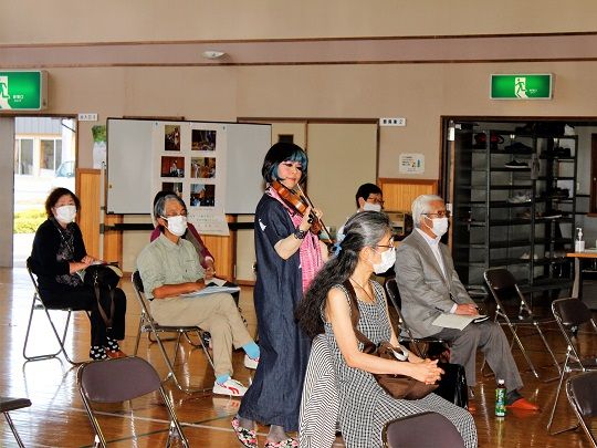参加者から「バイオリンを思うように弾けなかったとき、どう乗り越えたのか」と聞かれ「何度も辞めたいと思ったが、演奏を聞いて喜んでくれる人がいて励みになった」と話し、「小学生の時に課題ができずいじめられ死を考えたこともあったが、姉に説得され生きる力、勇気をもらった。その時の印象が強く心に残っている」と、お姉さんとのエピソードを話しました。