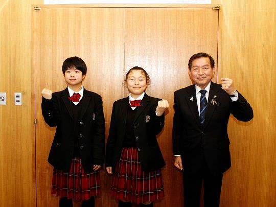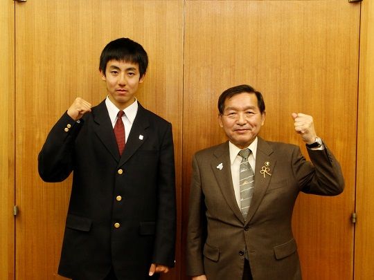 牛越市長は「体調を整えて、ぜひ良い成績を残してください。将来は海外にも羽ばたいてほしい」と激励しました。