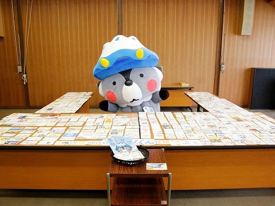 9年目を迎えた恒例のおおまぴょんへの年賀状募集ですが、今年は557通に上りました。内訳は市内68通、市外県内175通、県外314通で、台湾やアメリカなど海外からも届きました。