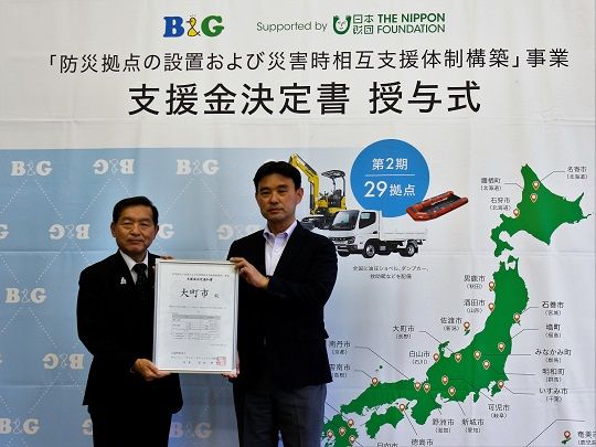 この事業はB&G財団が実施し災害発生時の緊急対応や避難所運営に必要な機材の配備と防災倉庫の整備のほか、災害現場で役立つ実践的な研修などの人材育成に係る費用について助成を行うもので事業を開始した昨年度は25カ所、今年度は新たに29カ所が選定され、令和6年度までに全国で100カ所の選定を目指しています。