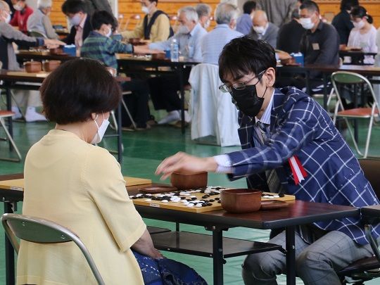 22日に総合体育館で行われた長野県知事杯・大町市長杯争奪囲碁大会には、大町市内・長野県内だけでなく、首都圏・中京圏・近畿圏など全国各地から集まった約130人の囲碁愛好者が参加し、感染症対策をしながら各階級に分かれて熱い戦いを繰り広げました。
