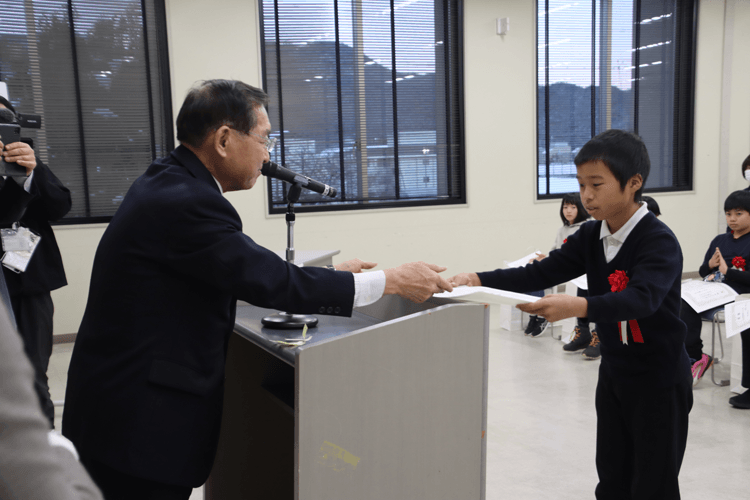 この日は、10月16日に行われた選考審査会で選出された、金・銀・銅賞の受賞者10人に、牛越市長が賞状と記念品を授与しました。