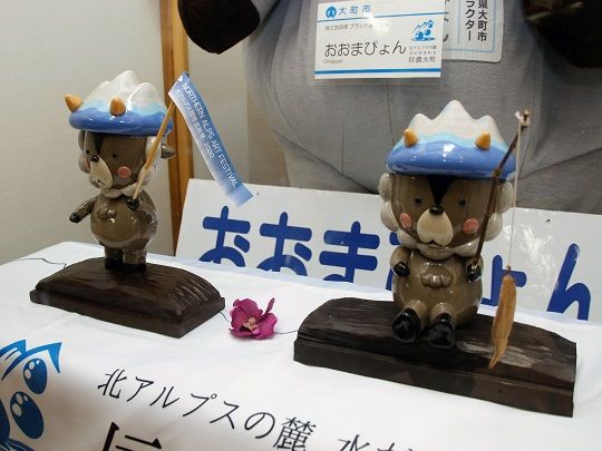 相澤さんは3年前に大町市に移住、おおまぴょんファンとなり、忠実に再現できるよう何度も市役所に足を運んだそうです。「焼いたときに色が変わるので焼き上がるまで心配だったが、うまくいって良かった。手の部分は旗などを持てるようにしており、イベントなどのPRができるようにした。今後もいろいろなおおまぴょんを作り、大町市の宣伝に力添えできれば」と人形制作への思いを語りました。