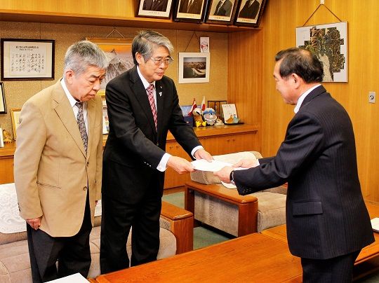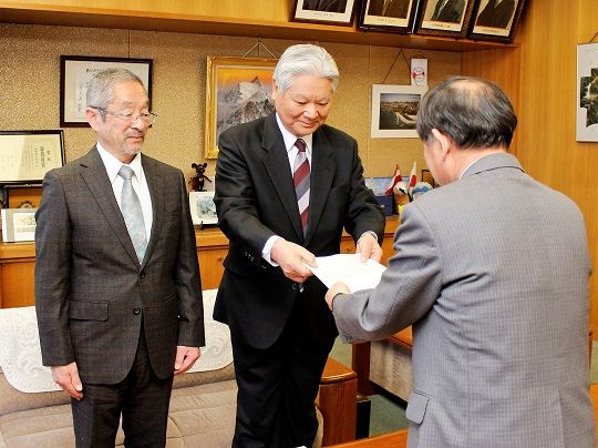 牛越市長は「熱心に協議いただき感謝。実現に向け着実に計画を進め検証を加えていく」と話し計画を受け取りました。