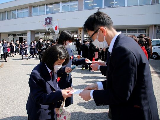 新型コロナウイルスの感染拡大防止のため3月2日から休校している市内小・中学校では、3月17日・18日の卒業式を、在校生不在、来賓を減らし時間を短縮するなど、規模を縮小して行いました。卒業生にとって少し寂しい門出となりましたが、東小学校では卒業式終了後には外で見送りをしていた先生たちに感謝の手紙を渡したり写真撮影したりして、別れの時を惜しみました。