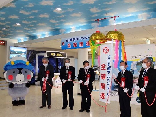 開通式に出席した牛越市長は「アルペンルートの全線開業から50年目の節目の年を迎える今年、感染対策に万全を期してお客様を迎えたいと思う。安心・安全の中で多くの皆様に来ていただきたい」とあいさつしました。その後関係者でくす玉を割り、今シーズンの営業開始を祝いました。