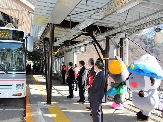 昨年の電気バス利用者は、新型コロナウイルス感染症の影響により例年の4分の1程度となる約25万人まで落ち込みましたが、今年は感染予防対策を講じた上で営業を開始しており、扇沢駅からの電気バス始発便には126人が乗車しました。