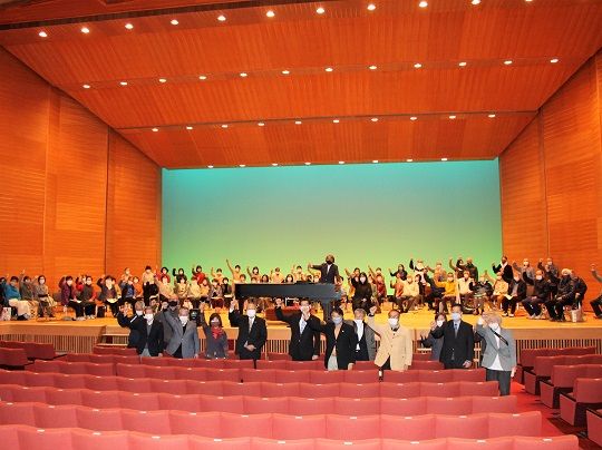 9月に文化会館で開催される「梯剛之(かけはしたけし)ピアノコンチェルトin北アルプス」に出演する地元合唱団の結団式が4月10日、文化会館大ホールで行われました。