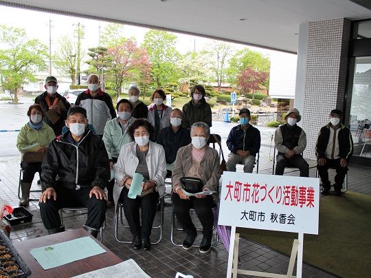 大町公民館は4月29日、毎年恒例となっている菊づくり講座の開講式と1回目の講座を、大町公民館・文化会館入口横駐車場で行いました。