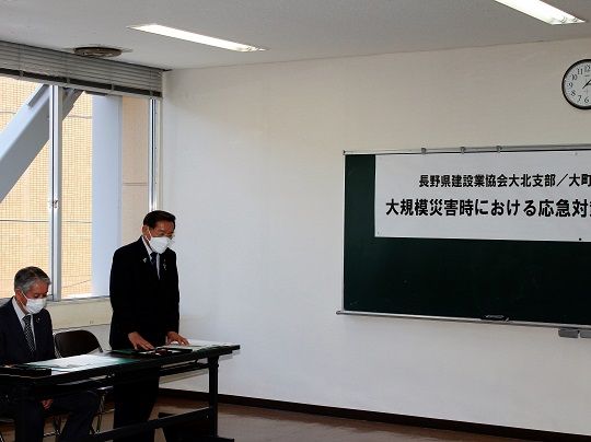 この協定は令和元年度に発生した東日本台風災害で千曲川の堤防が決壊し、広範囲に氾濫土砂の堆積等の被害を受けたため、県が同協会に応急対策の実施を要請したところ市町村との間に協定が結ばれていなかったことから連絡体制や指揮系統などに課題が生じたことや、大規模な災害が発生した場合には市町村の枠を超えた広域的な応援体制の構築が必要になることから、大規模災害時に迅速かつ円滑に対応できるよう県内の各支部と市町村が締結を進めています。