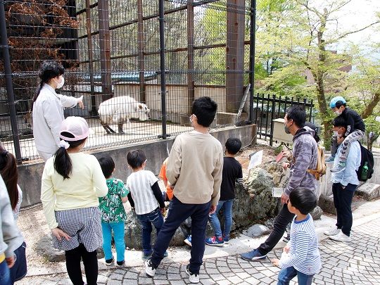 同日付属園では、飼育・栽培している動植物たちについて飼育員が解説する「どうぶつ観察ツアー」を実施しました。付属園では、ライチョウ、スバールバルライチョウ、ニホンカモシカ、フクロウ、ハクビシン、ミズバショウなどの動植物を飼育・栽培しており、生きている姿と命の大切さが分かるような生体展示だけでなく、傷ついたり病気になったりした動物を保護する、希少種の保護などの役割を担っています。当日は、飼育員が園内を回りながら、動植物の生態や個体の生育状況などを解説し、参加者は興味深く聞き入っていました。