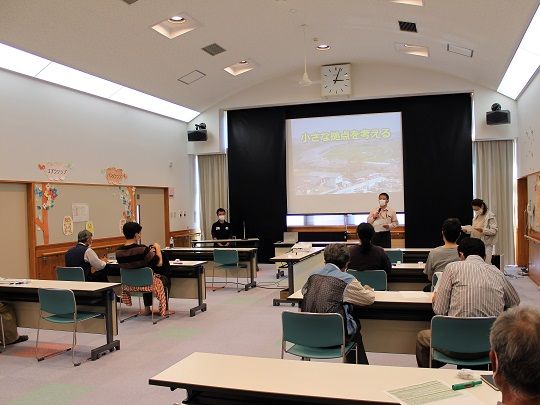 講師を務めた菊池さんは「大きく変化する時代、これまでとは違う社会になるため、今のシステムを変えないといけない。未知に対して考えて行動する力が地域に求められている」と話し、自身が関わっている北上市にある住民主体の組織を例に「小さな拠点は何をするところなのか」失敗談を含めて実践事例を紹介しました。