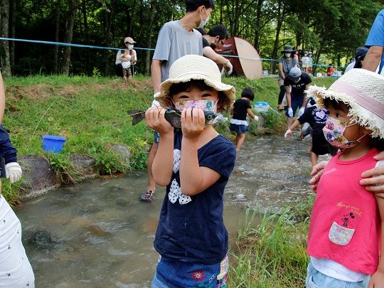 新型コロナウイルスの影響により生活にさまざまな制限を受ける中、子どもたちが楽しめる貴重な機会となりました。家族連れなど約200人が参加し、放流したイワナやニジマスなどのつかみ取りを体験しました。