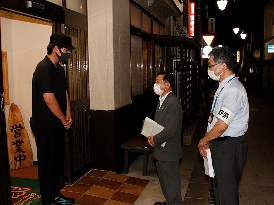 県と市は8月26日、新型コロナウイルス感染症への対策を強化するため、市内の酒類を提供する飲食店などを訪問し、営業時間短縮などを要請する啓発活動を実施しました。