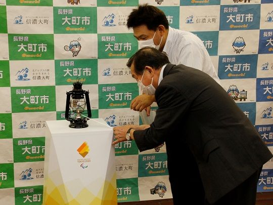 大町市では、この日の朝から市役所本庁舎1階の市民ホールでランタンにともされた聖火が1日展示され、来庁した皆さんに共生社会への意識啓発が行われました。