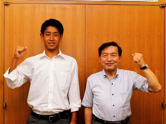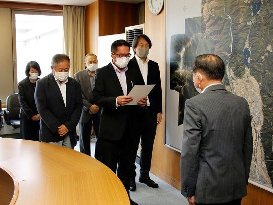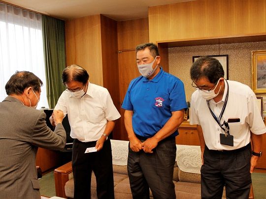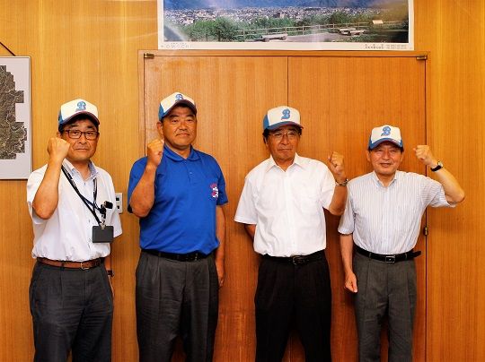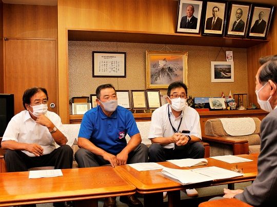 この日、市役所を訪れたのは監督の下川幸雄さん、主将の小林定寿さん、会計の降幡一生さんです。