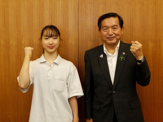 8月18日、全国中学校体操競技選手権大会に出場する吉澤萌々さん=第一中3年=が、牛越市長を表敬訪問しました。