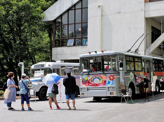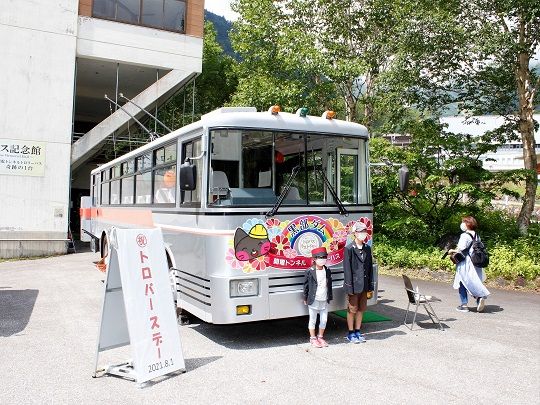 市は平成30年に運行を終了しクラウドファンディングにより最後の1台が保存されている関電トンネルトロリーバス(通称「トロバス」)の誕生日を祝うトロバースデーイベントを8月1日、市扇沢総合案内センター内にあるトロバス記念館で行いました。