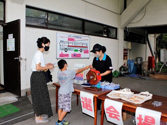 当日は記念館を会場としてトロバスに関したクイズラリーも行われ、全問正解すると関電トンネル電気バスの往復ペアチケットなどが当たる抽選会もあり、観光客や家族連れなど大勢の人で賑わいました。