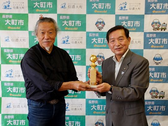 令和2年7月17日 喜多郎さんからゴールデングローブ賞のトロフィー寄贈
