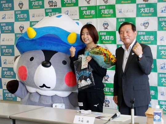 奥原さんは「ふるさと大町にこんなにも温かく迎えてくれてうれしい。ちょうど一年後に控えたバドミントン人生最大の目標である東京オリンピックに向けてパフォーマンスを上げていきたい。開催は延期してしまったが、目指すものは変わらず金メダルです」と力強く話しました。