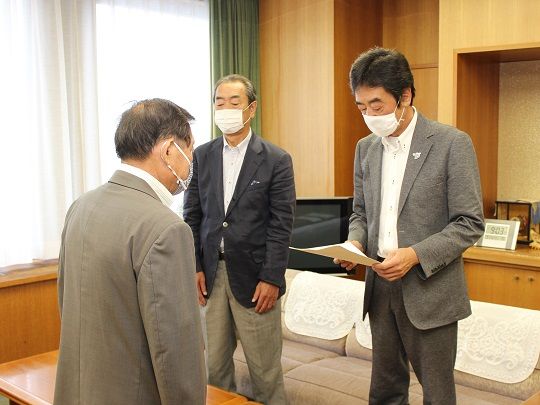 市行政改革推進委員会の宮坂佳宏会長と島田剛志副会長は、指定管理期間が終了するため諮問を受けた4施設の審議結果を7月17日に牛越市長に答申しました。