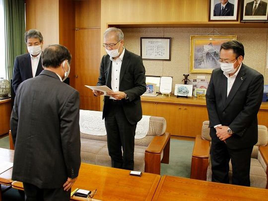 牛越市長は「タクシー業界は観光のみならず、さまざまな産業につながっている。市民の皆さんの社会的な行動が徐々に広がっている中、何とか支援の取り組みを進めていきたい」と要望書を受け取りました。
